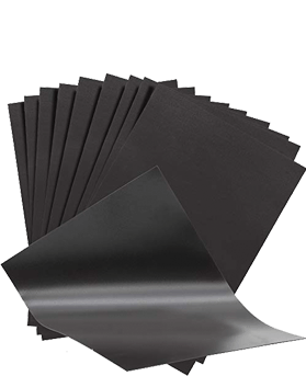 Flexible Magnet Sheets (Plain Black) are supplied without lamination on either side. One side is multi-pole magnetized and finished with a matte or gloss UV protective coating, while the reverse side remains non-magnetized and uncoated. The non-magnetized surface can be laminated with self-adhesive, paper, or PVC, offering flexibility for multiple applications.